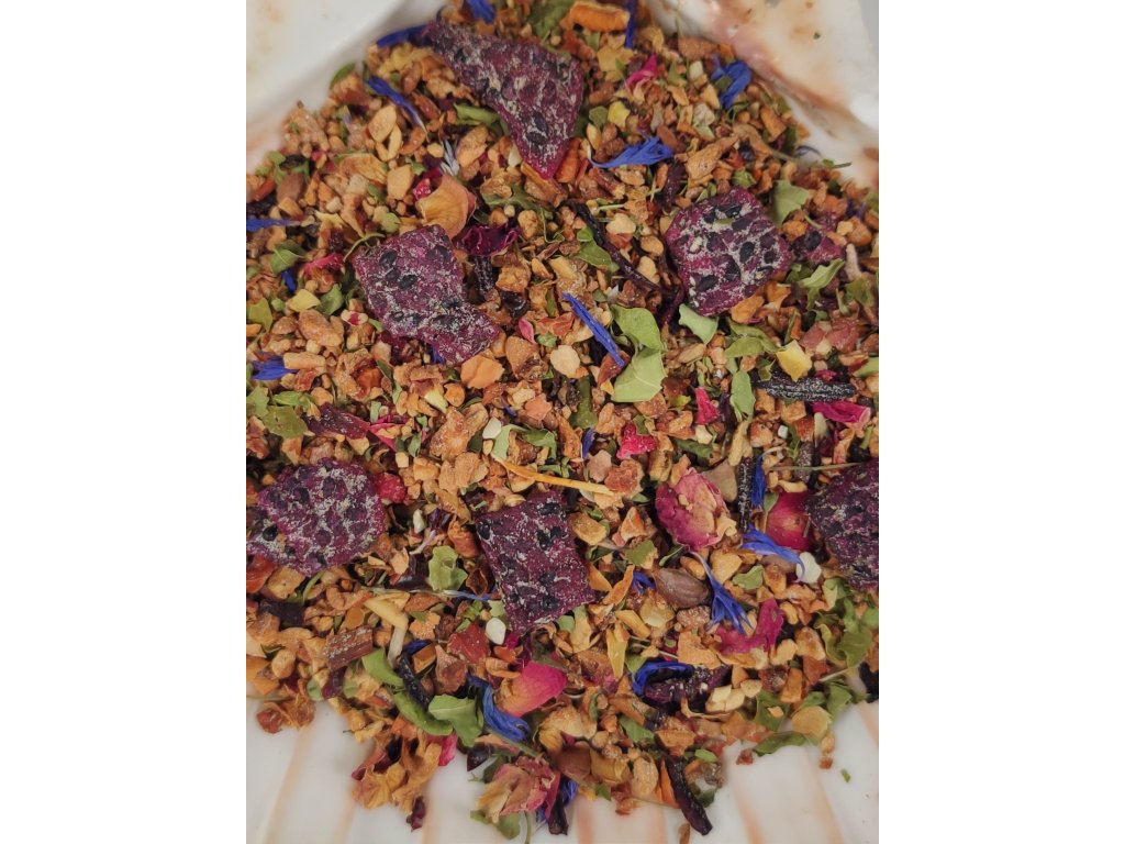 Složení: dračí ovoce (9%) růže, jablka, šípek, kolagen (živočišný), maliny, chrpa, ibišek, moringa,