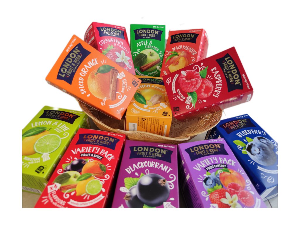Ovocné čaje London Fruit & Herb překvapí skvělou chutí a vůní a to bez přídavku cukru, bez umělých barviv a konzervačních látek, bez obsahu kofeinu.