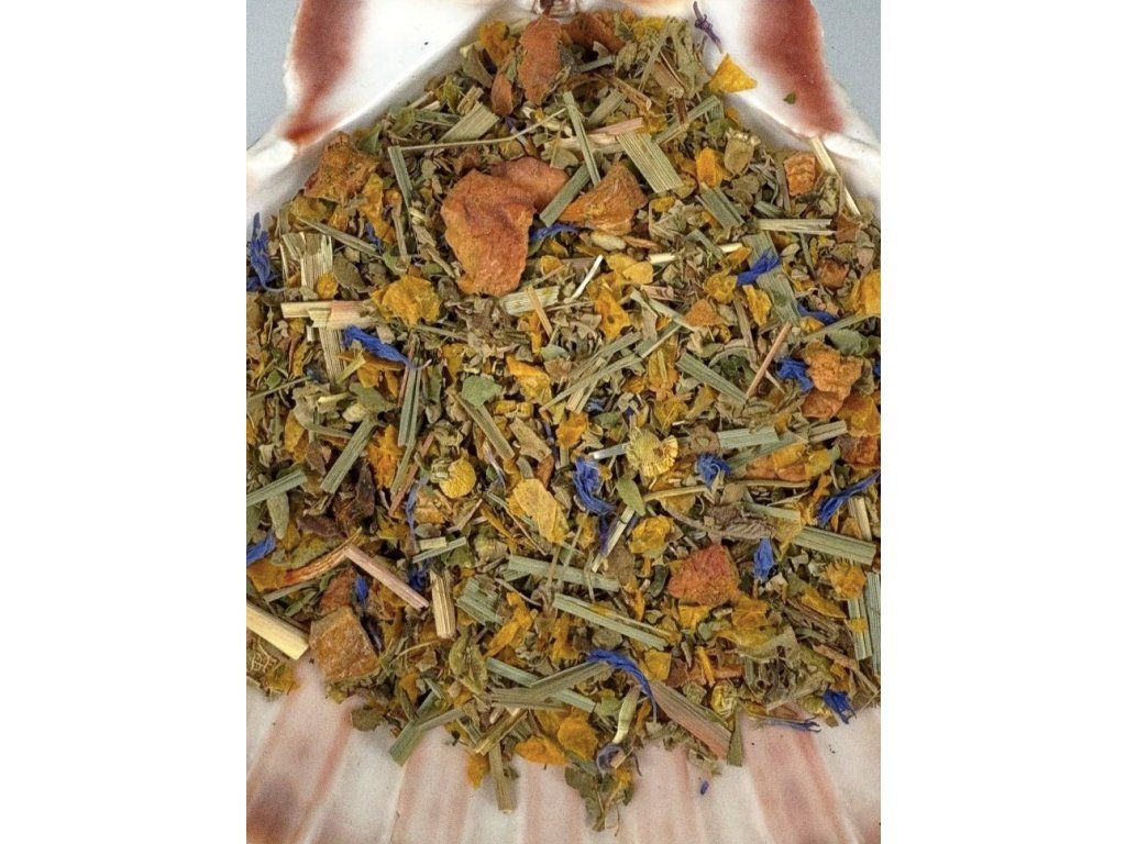 Japonská matcha, moringa, okvětní lístky růží, kopřiva list, meduňka a měsíček, jablka, goji (kůstovnice čínská), citrónová tráva, přírodní aroma.